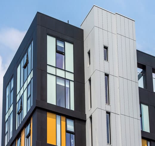 Our aluminium spandrel and sill panels provide a clean line in between transparent glazing and solid areas. They can be adapted in various colors and finishes and supplement the aesthetics of facades and contribute to the energy efficiency as well as insulation needs.